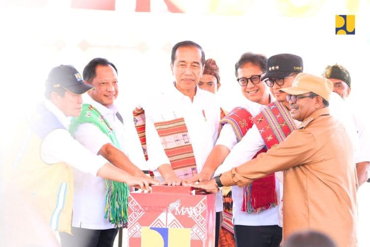 TIMOR TENGAH SELATAN – Presiden RI Jokowi didampingi Menteri Dalam Negeri Tito Karnavian, Menteri Kesehatan Budi Gunadi Sadikin, PJ Gubernur Provinsi Nusa Tenggara Timur (NTT) Andriko Noto Susanto, dan PJ Bupati Timor Tengah Selatan Seperius Edison meresmikan Bendungan Temef, Kabupaten Timor Tengah Selatan, Provinsi Nusa Tenggara Timur (NTT), Rabu (2/10/2024).