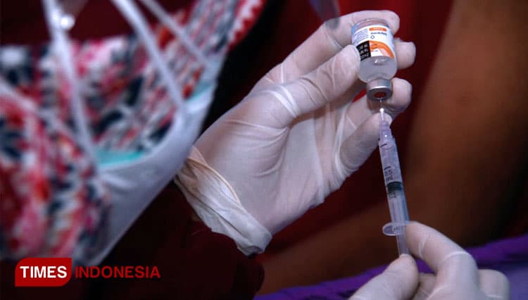 TIMES Bogor/Salah satu tenaga kesehatan saat mengisi dosis vaksin untuk disuntikkan. (FOTO: Adhitya Hendra/TIMES Indonesia)