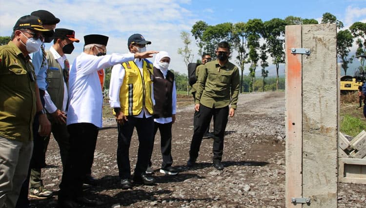 TIMES Bogor/Sekjen PUPR RI Mohammad Zainal Fatah dampingi Wapres RI KH Ma'ruf Amin meninjau lokasi pembangunan Hunian Sementara (Huntara) bagi korban terdampak erupsi Gunung Semeru di Desa Sumbermujur, Kecamatan Candipuro, Kabupaten Lumajang.